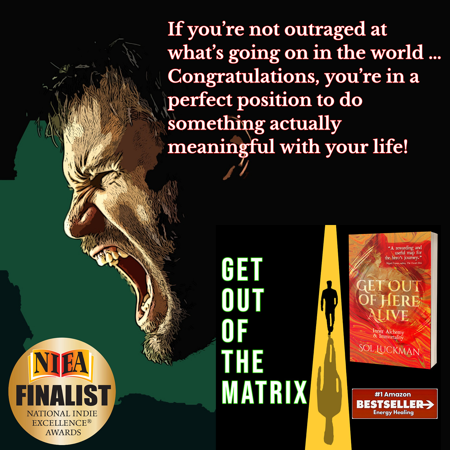 The 19th Annual National Indie Excellence Awards (NIEA) are proud to recognize Sol Luckman’s new Amazon #1 Best Seller in Energy Healing, GET OUT OF HERE ALIVE, as a Finalist in the Body/Mind/Spirit category of this year’s competition.