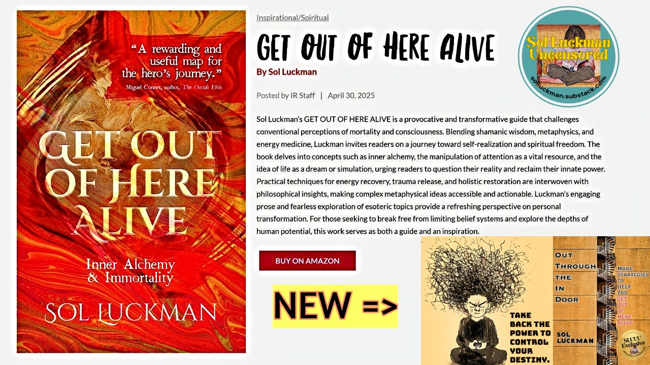 🚪 OUT THROUGH THE IN DOOR, a brand-new Sol Luckman Uncensored EXCLUSIVE, is a powerhouse of an ebook that serves as both an unofficial introduction and afterword to the author’s sensational Amazon #1 Best Seller in Energy Healing, GET OUT OF HERE ALIVE