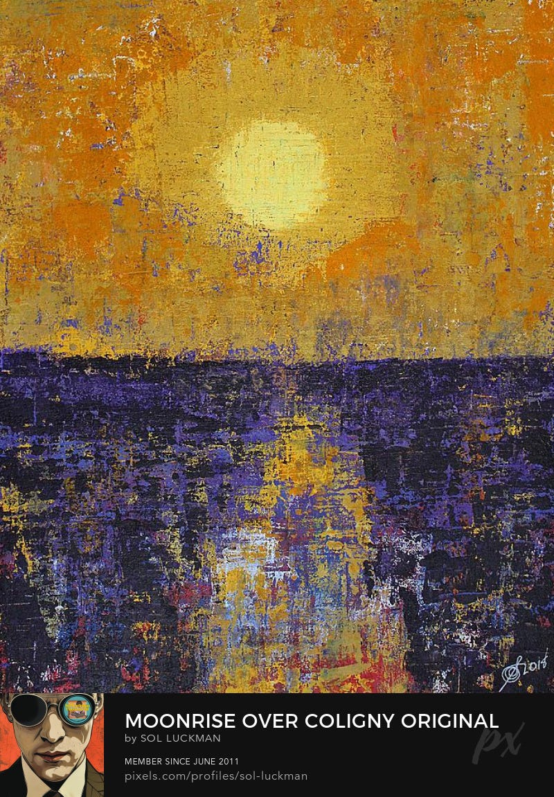 It was a joy reading the musings of Sol Luckman. So joyous, I’ll reread it. I may even buy one of his paintings.